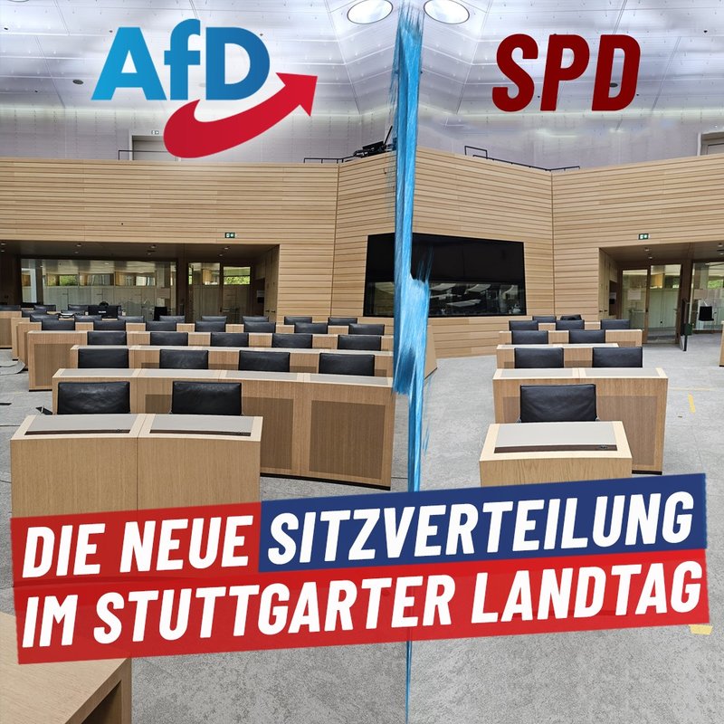 Neue Sitzordnung im Landtag BW: AfD mit 35 Sitzen, die SPD mit mageren 10 Stühlen vertreten. Ob das jetzt Dialog fördert oder einfach nur die Geräuschkulisse hebt, wird sich zeigen. Die Kleinsten schreien bekanntlich am lautesten. Popcorn wäre jedenfalls angemessen.